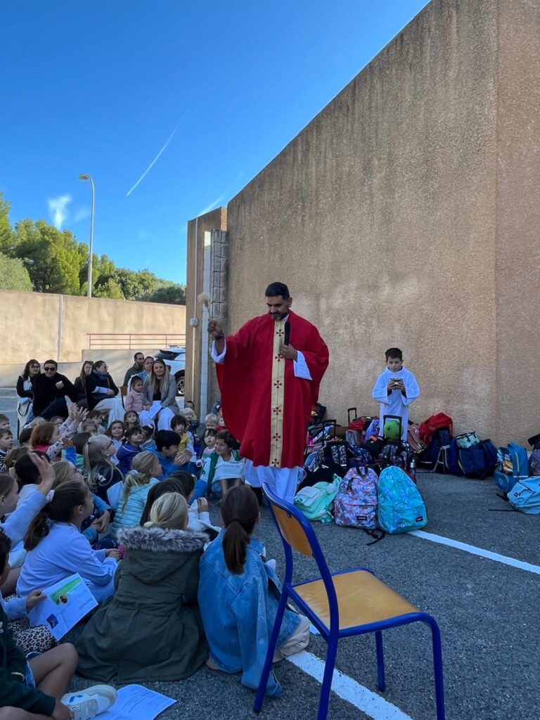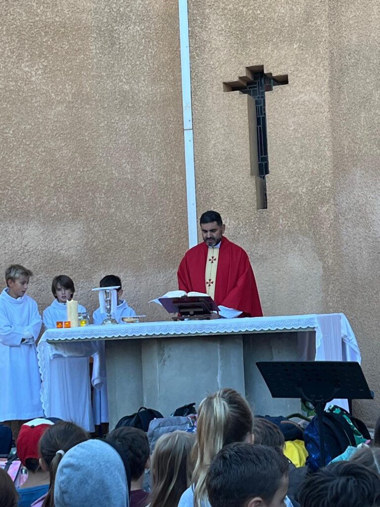 Ce vendredi 26 septembre, tous les élèves de l’école Saint Jean ont vécu deux temps forts: la messe de rentrée et la bénédiction des cartables. L’occasion de remercier le Père Jorge pour son accompagnement sur cette nouvelle année scolaire centrée sur le thème: « Porteurs d’Espérance, Unité et Générosité ». Une messe qui a pour but de s’accueillir. Rappelons également d’accueillir un invité discret, invisible : Jésus. Laissons-nous guider cette année par le vent de l’Esprit Saint ! Et, Chantons notre joie !