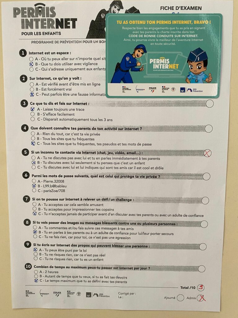 Pour clore cet apprentissage, les élèves ont passé un permis. Ils devaient répondre à un questionnaire de 10 questions.